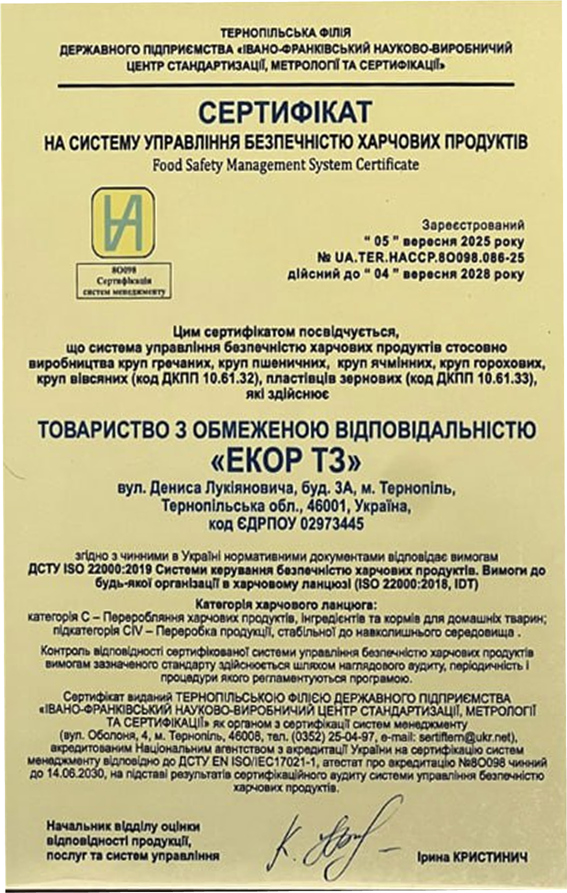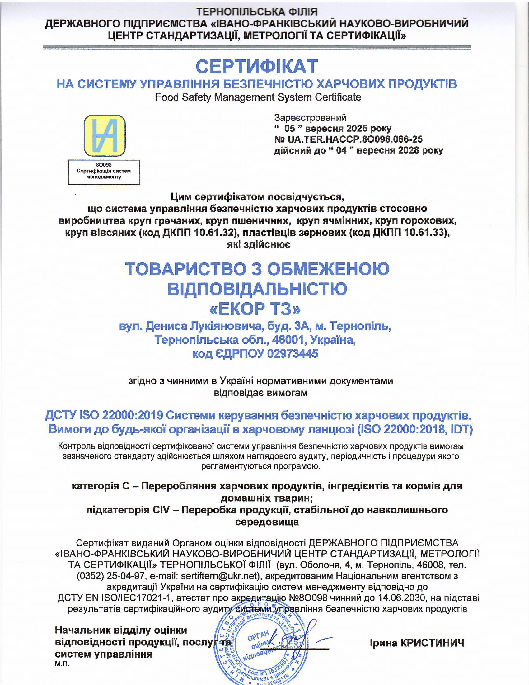 Cертифікати «ЕКОР ТЗ»